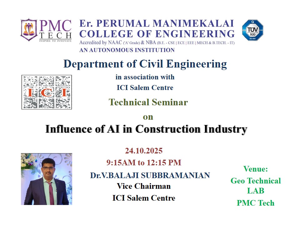 đź’ˇ Technical Seminar on Influence of AI in Construction Industry organized by Dept. of Civil Engineering on 24th October 2025