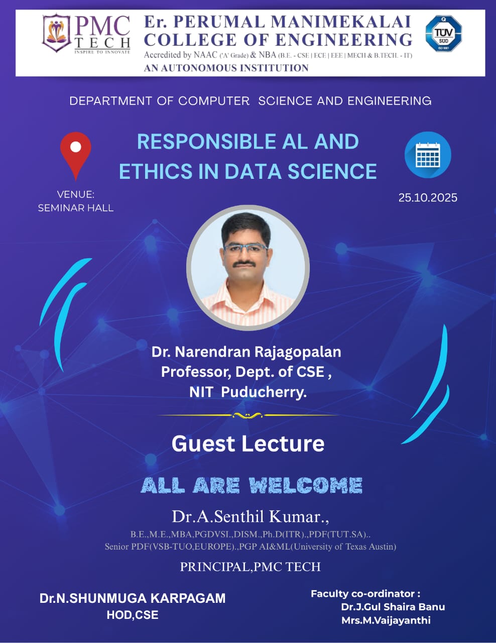 đź’ˇ Guest Lecture on Responsible AL and Ethics in Data Science by Dept. of CSE on 25th October 2025