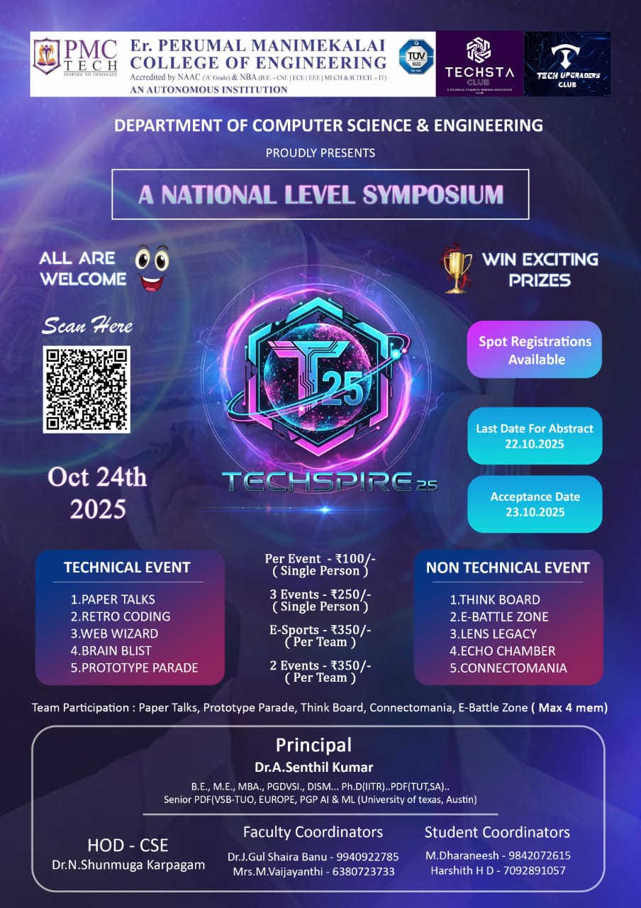 đź’ˇ National Level Technical Symposium - TECHSPIRE25 organized by Dept. of CSE on 24th October 2025