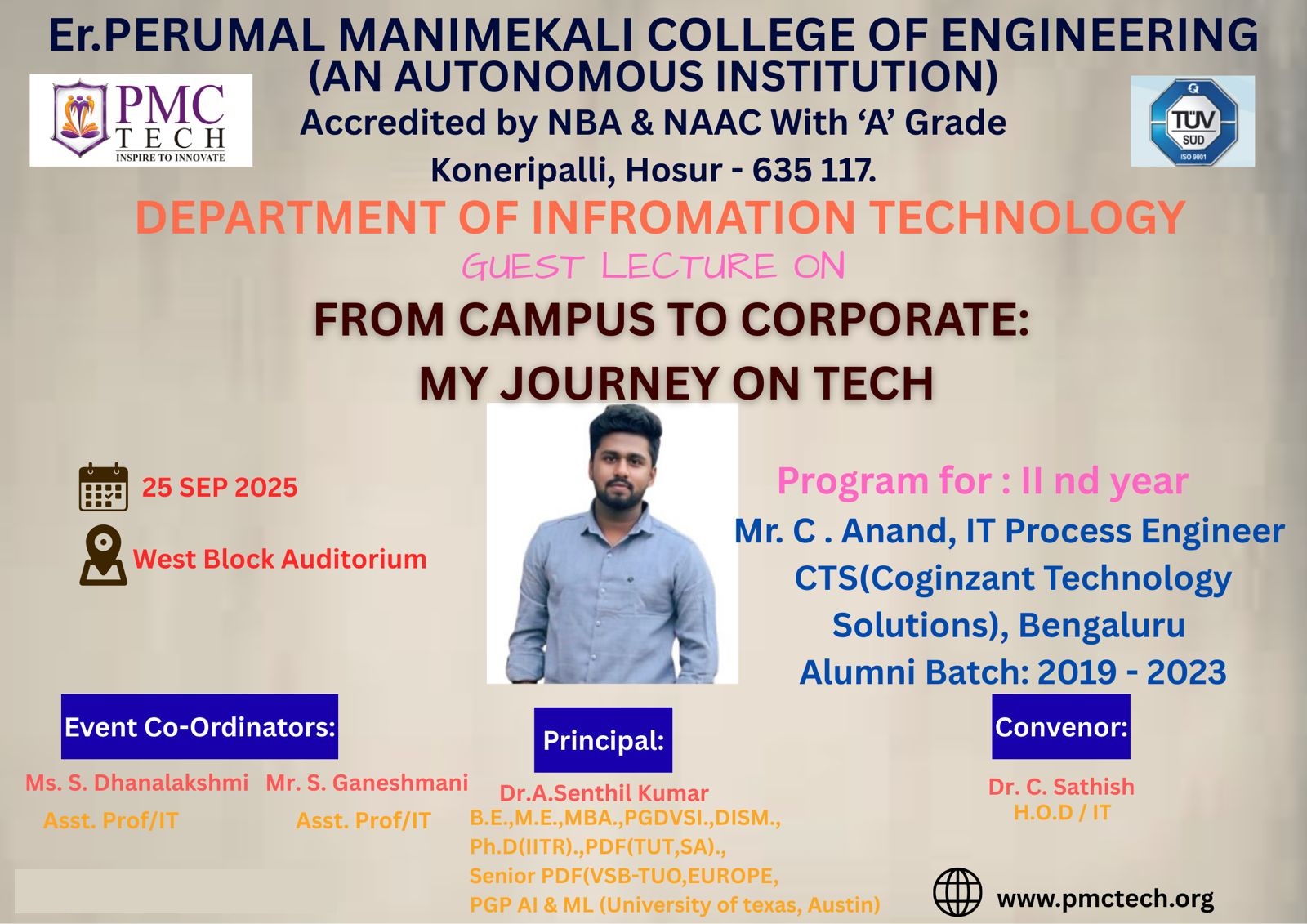 đź’ˇ Alumni Seminar on "From Campus to Corporate: My Journey on TECH" organised by Department of Information Technology on 26th September 2025