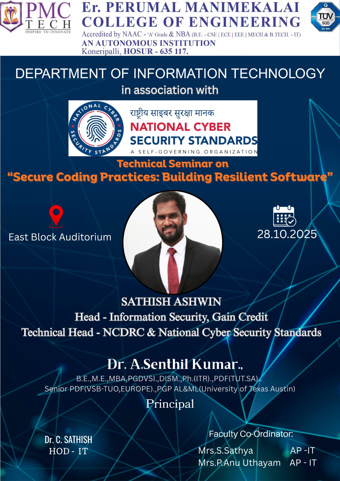 đź’ˇ Technical Seminar on Secure Coding Practices: Building Resilient Software by Dept. of IT on 28th October 2025