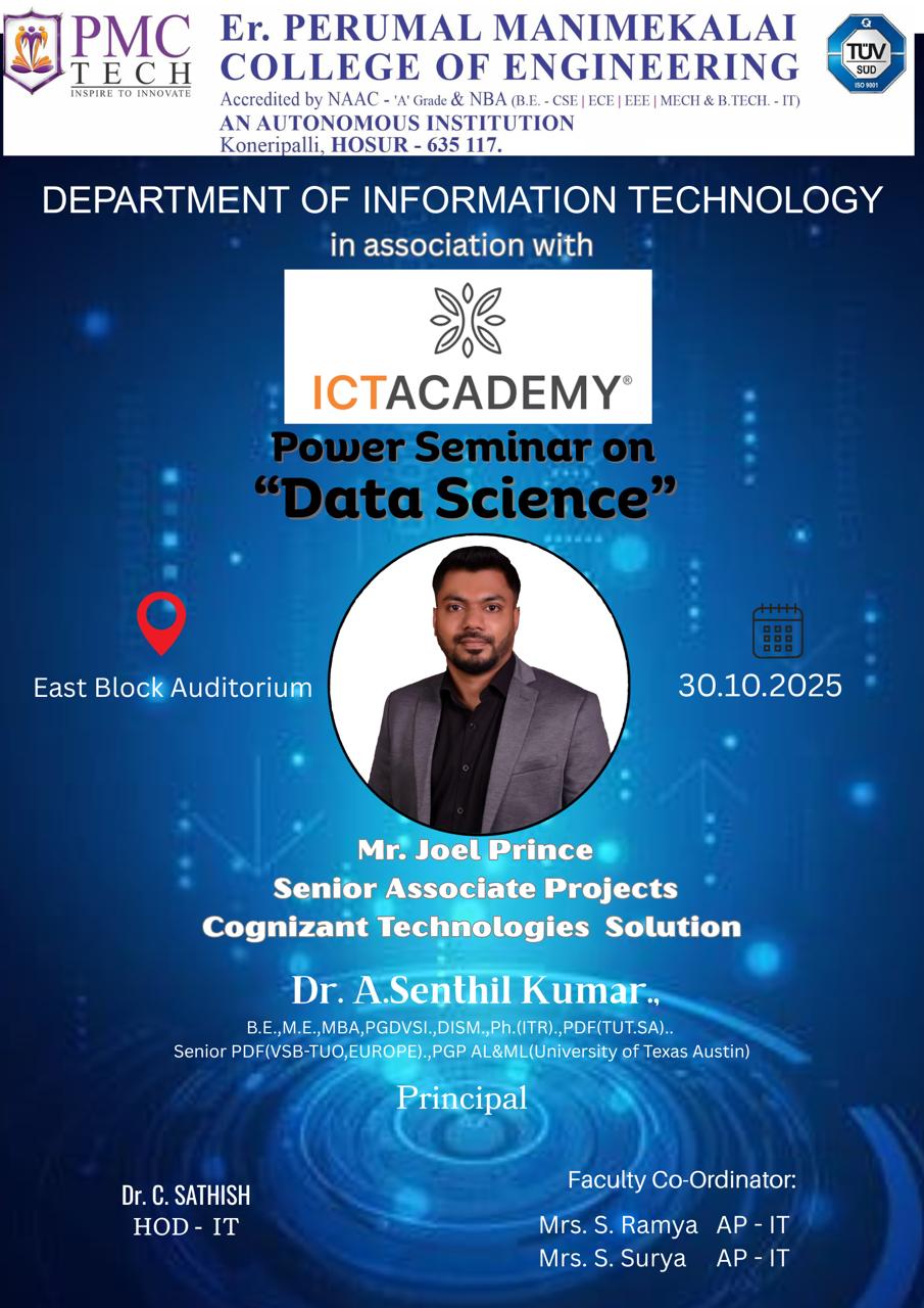 đź’ˇ Power Seminar on Data Science in association with ICT Academy organized by Dept. of IT on 30th October 2025