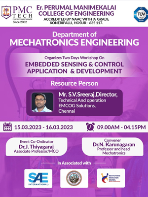 Department Of Mechatronics Engineering Proudly Presents Workshop On Embedded Sensing And Control Application And Development, To Enhance Student Knowledge.